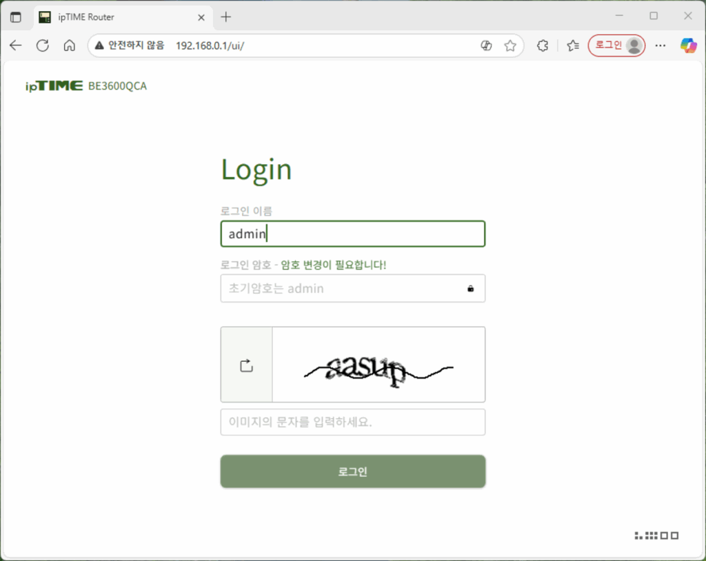• 초기 아이디와 암호는 admin으로 되어있고 설정을 한 이후에는 변경을 권하고 있다.