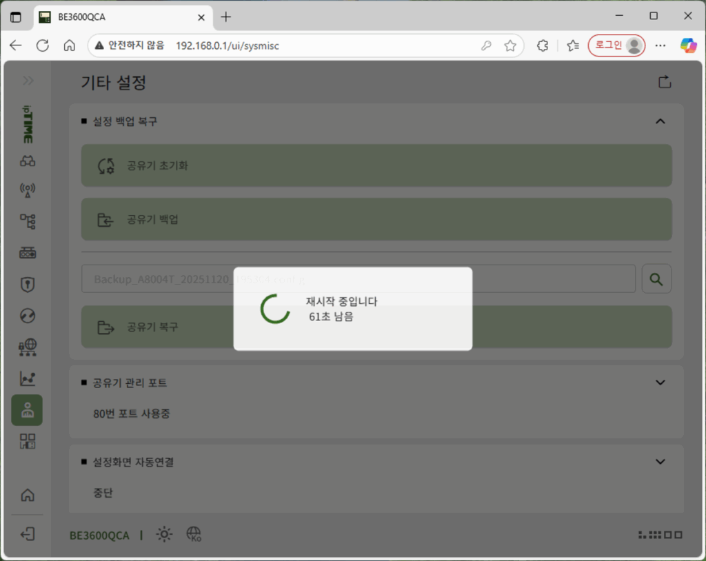 • 나는 기존 공유기 데이터를 백업하여 새로운 공유기에 데이터 복구를 하여 사용하기 시도 해보았다.