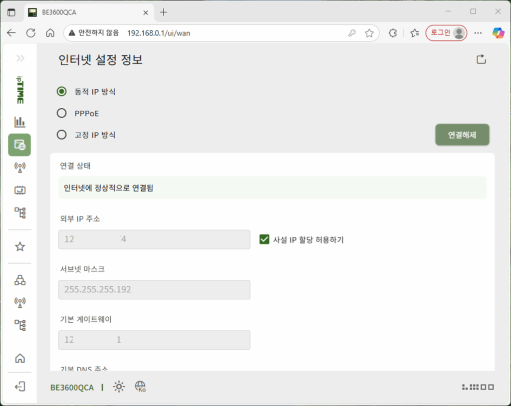 • 192.168.0.1을 입력하여 접속할 수 있다.