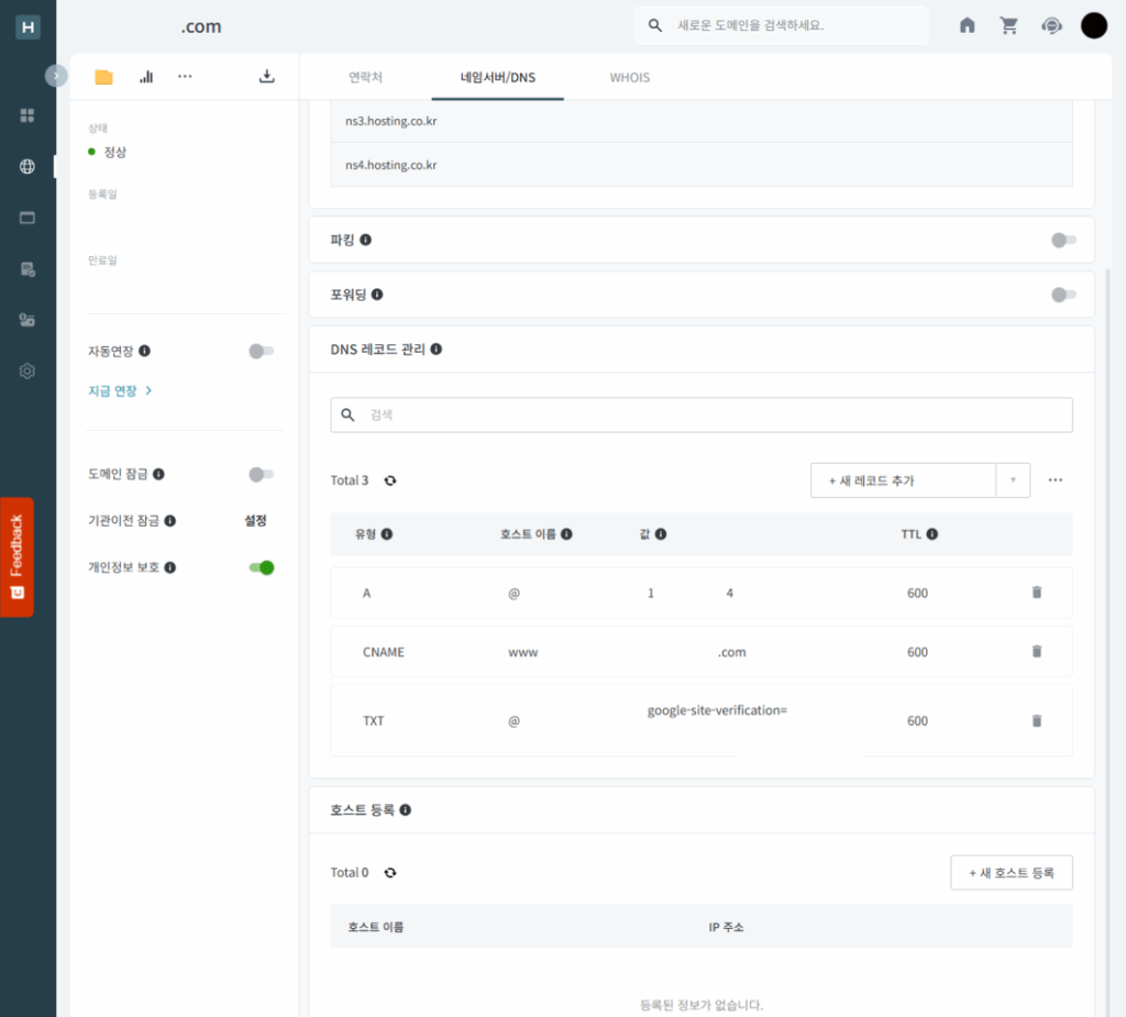• ip가 변경되어 dns 서버 설정도 바꿔주었다.